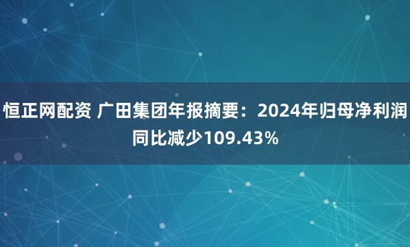 (原标题:广田集团年报摘要:2024年归母净利润同比减少109.43%)恒正网配资 雷达财经 文|杨洋 编|李亦辉 4月22日,广田集团(002482)发布20....