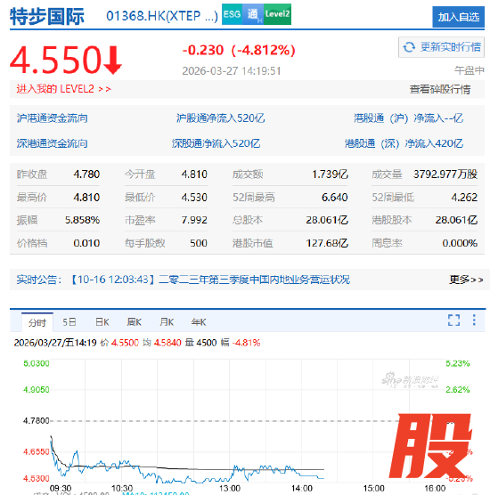 3月27日,特步国际(01368.HK)开盘股价下挫,盘中一度跌超5%。昨日(3月26日),特步国际发布2025年业绩后,股价盘中大跌逾9%,创下近一年新低,昨日收盘,跌幅仍达7%。一份营收141.5亿元、净利润13.7亿元、双双保持增长的财报,为何被投资者用脚投票?