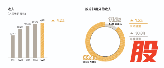 主品牌“躺平”,特步的亮点来自专业运动分部——索康尼+迈乐。这个分部2025年收入同比增长30.8%,达到16.36亿元。