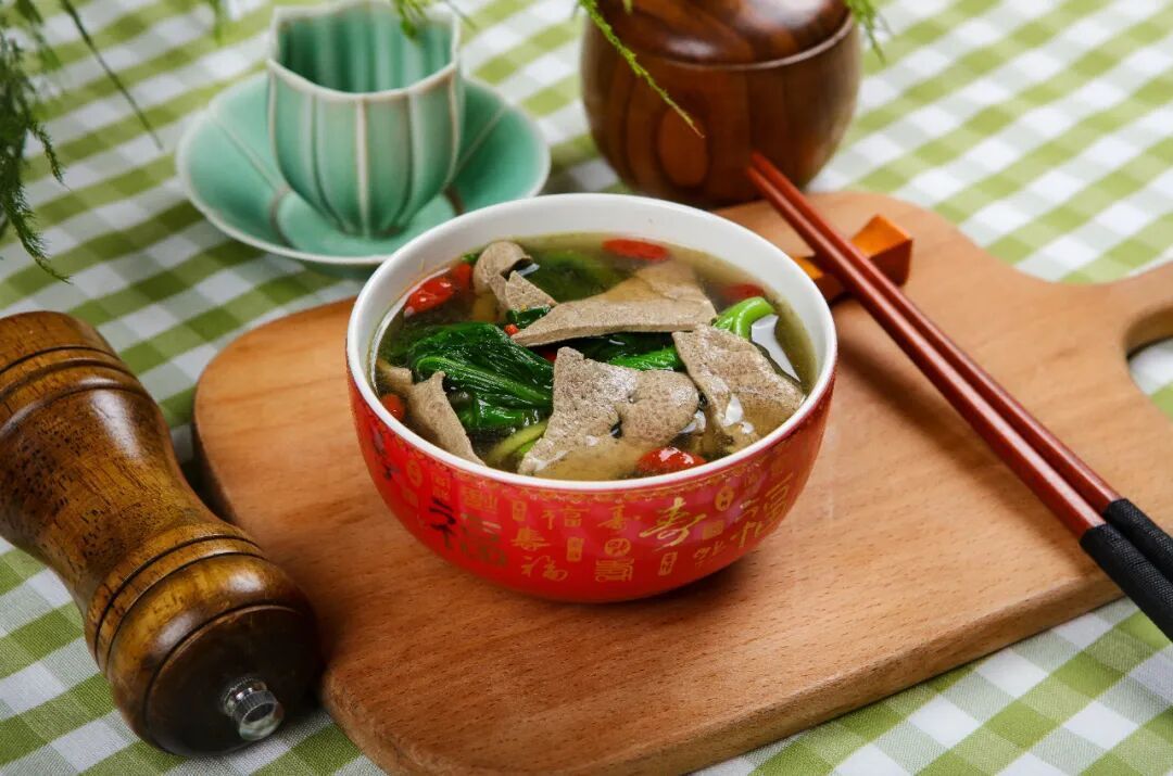 做法:清水洗净食材,猪肝切片,生姜去皮切3片。先将猪肝、生姜加适量清水,煲5分钟左右,再放入枸杞叶与枸杞子煮5~10分钟,加盐调味即可。