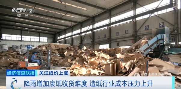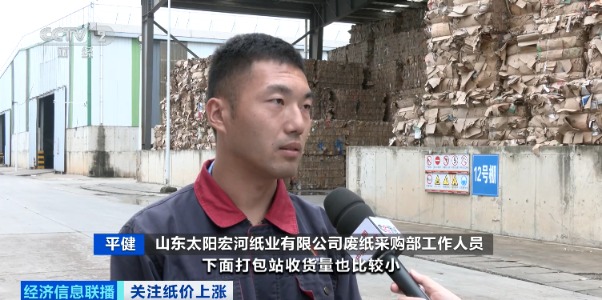 山东太阳宏河纸业有限公司废纸采购部工作人员平健:近期雨季,打包站收货量也比较小,质量上也不太稳定,大部分纸厂收货量都处在低位,大部分是勉强够日需。